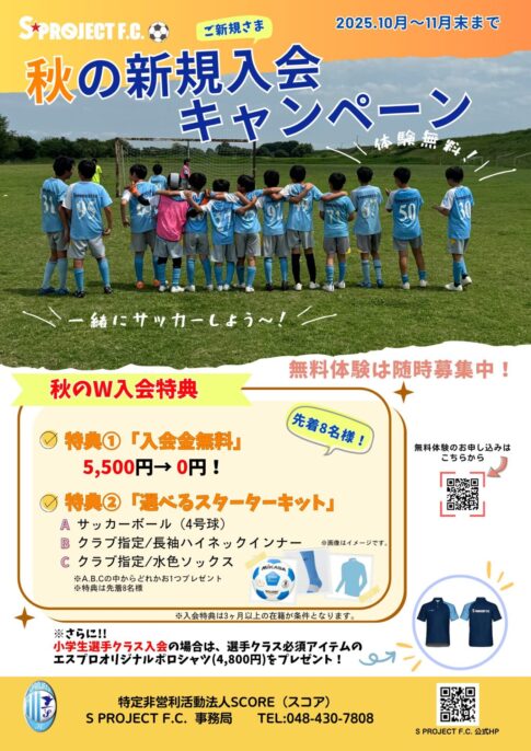ようやく訪れた爽やかな季節に心が弾みます。スポーツの秋、到来ですね! サッカーやってみたい!もっとうまくなりたい!体力をつけたい! そんな風に感じたら、今がチャンス。10月よりスタートした《秋の新規ご入会キャンペーン》の...